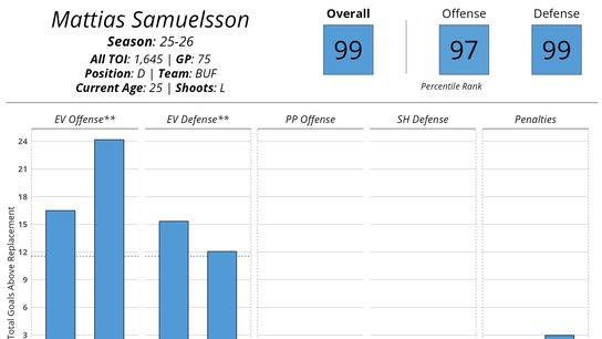 Something changed this year and Samuelsson is currently outsmarting the entirety of math itself. With five goals and seven assists in 22 games, Samuelsson is only two points shy of his career high 14-point season from last year. He’s a +10, he’s finally using his 6’4” frame to its full potential in front of the net while clearing out the opposition, and he’s playing nearly 22 minutes a night.
